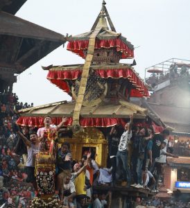चैत मसान्तको दिन बेलुकी गःहिटीमा रहेको भैरवमा गुठी संस्थानद्वारा सरकारी पूजा गरेपछि भैरव र भद्रकालीको रथलाई भेलुखेल पुर्याउने बित्तिकै ५५ हातलामो इन्द्रध्वजासहितको लिङ्गो उभ्याउने परम्परा छ ।