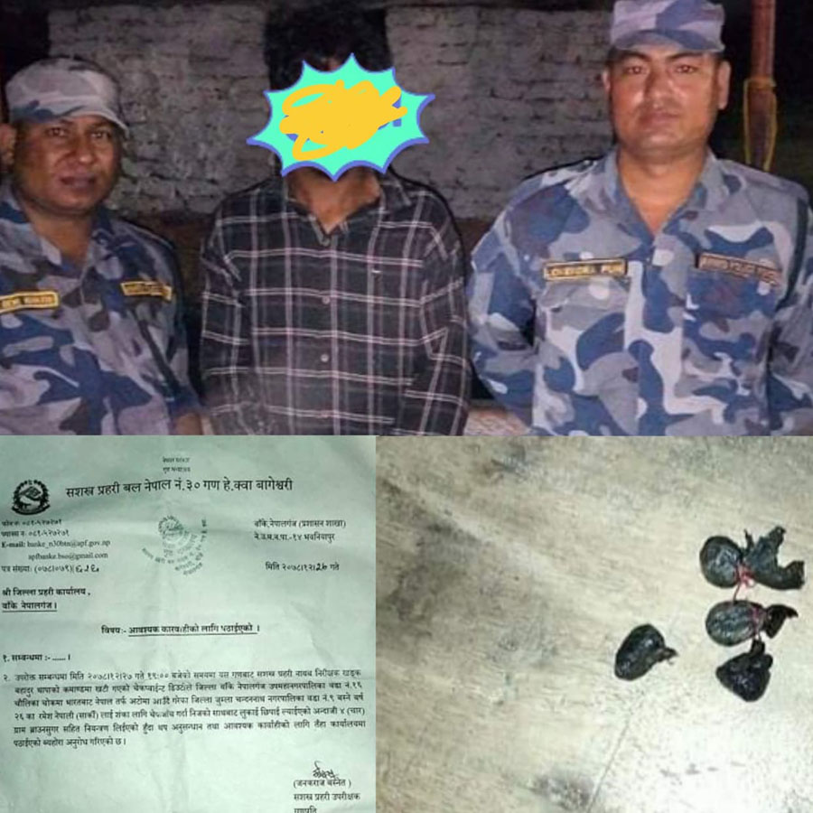 भारतको रुपइडिहाबाट नेपालगञ्जतर्फ अटो रिक्सामा आउँदै गरेका रमेशलाई शंका लागि चेकजाँचका क्रममा मुखभित्र लुकाएर ल्याइरहेको अवस्थामा ४ ग्राम ब्राउन सुगरसहित पक्राउ गरेको सशस्त्र प्रहरी उपरीक्षक बस्नेतले बताए ।