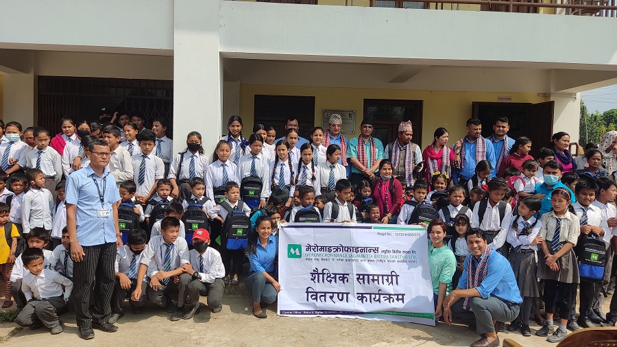 काठमाडौं – मेरो माइक्रोफाइनान्स लघुवित्त वित्तीय संस्था लिमिटेडले नुवाकोट र रसुवाका समुदायिक विद्यालयका विद्यार्थीलाई शैक्षित सामाग्री वितरण गरेको छ । बेलकोटगढि नगरपालिकाको कल्याणिदेबि माध्यामिक बिद्यालयका ६० जना, बागेश्वरी प्राथमिक बिद्यालयका ५० जना त्यस्तै बिदुर नगरपालिकाको आगापुटार स्थित शुलक्षणा माध्यमिक बिद्यालयका १०८ जना बिद्यार्थिहरु लाभान्वित भएका हुन् ।