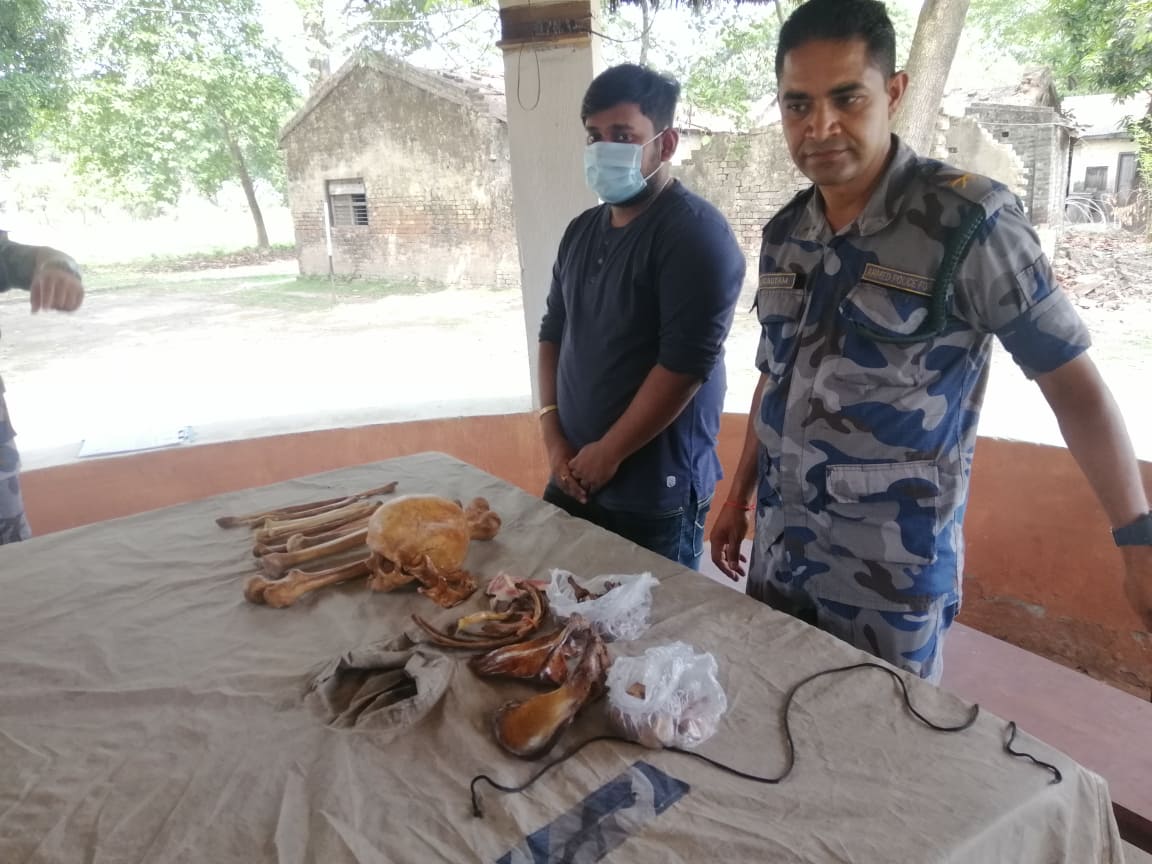 उनको साथबाट एउटा मानिको सिङ्गो शरीरको हड्डी बरामद भएको लामिछानेले बताए । पढाइ सकेर घर फर्किएका सिन्हाको झोलाभित्र प्रहरीले मानव खप्पर एउटा, खुट्टाको हड्डी, हातको हड्डी, करङ, बङ्गराको हड्डी, काँधको हड्डी, घाँटीको हड्डी, हिपको हड्डी, ढाड, औँला र कुर्कुच्चाको हड्डी बरामद भएको हो । सिन्हाले भारततिर लैजाँदै गरेको अवस्थामा मानव खप्पर, बङ्गारा, घाँटी र हिपको हड्डी एक/एकवटा, काँधको हड्डी दुई, खुट्टाको नली हड्डी तीन, हातको हड्डी ६, करङ सात, ढाड, औँला र कुर्कुच्चाको हड्डी बरामद भएको एसपी लामिछानेले बताए ।