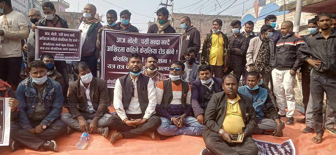 सप्तरी – विराटनगर महानगर पालिकाको ६ र ११ जोड्ने केशलीया मार्गको सडक बनाउनुपर्ने भन्दै स्थानीय धर्नामा बसेका छन् ।