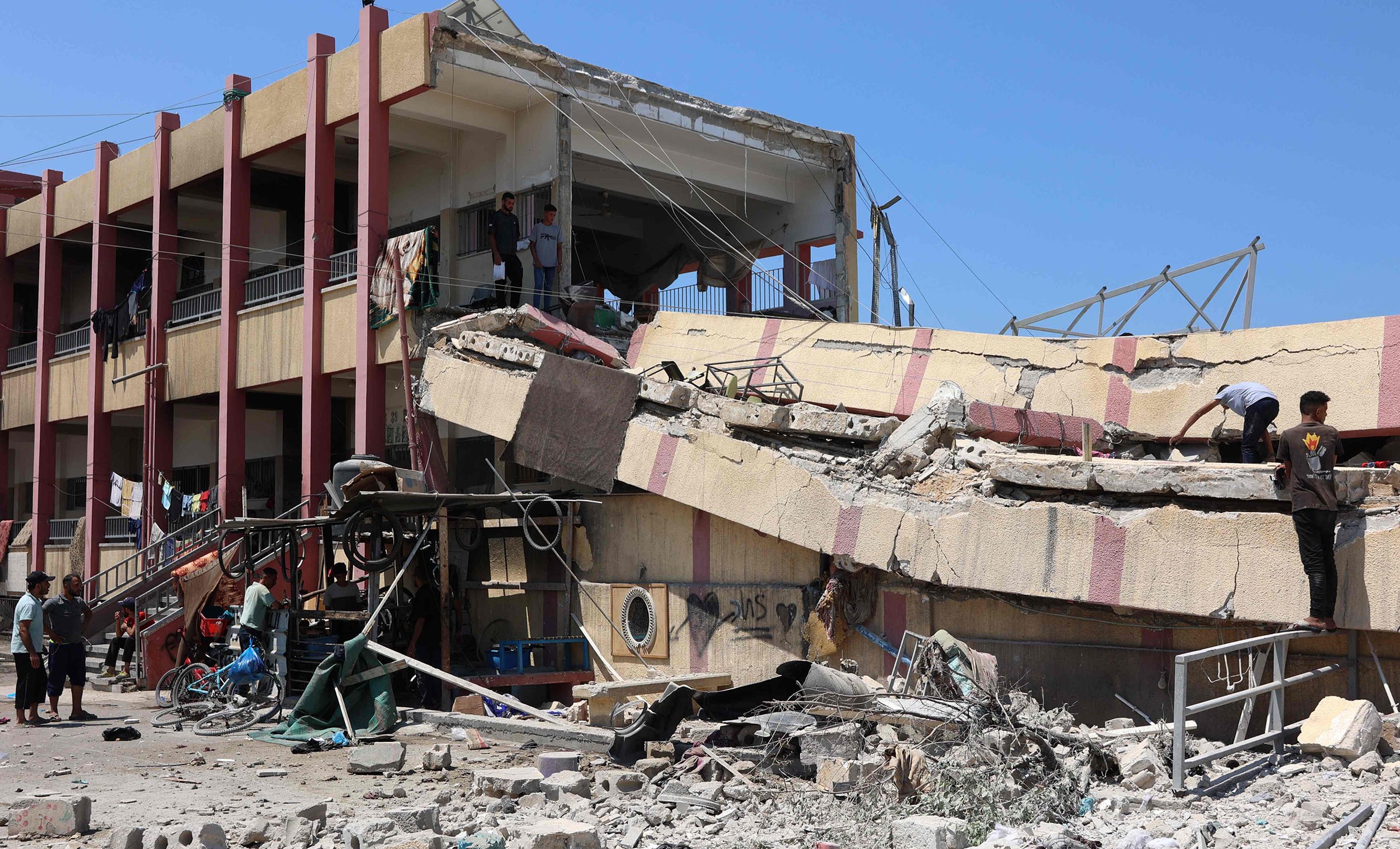 एएफपीले प्रसारण गरेको तस्बिरहरूमा विद्यालय भग्नावशेषमा परिणत भएको र आक्रमणपछि विस्थापित प्यालेस्टिनी पुरुष र महिलाहरू बच्चा बोकेर उक्त स्थानबाट भागिरहेको देखाइएको छ।