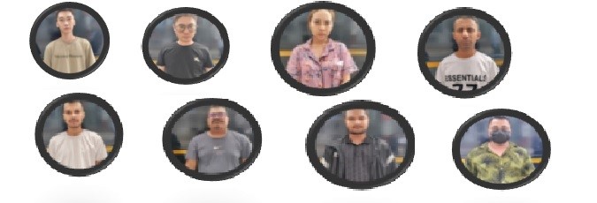 सीआईबीका प्रवक्ता एसपी होबिन्द्र बोगटीका अनुसार पक्राउ पर्नेमा चिनियाँ नागरिक डिङ जिआहोङ, लिन क्विजिङ, फिलिपिन्सका नागरिक हानिपा सिन्सुआत र नेपाली नागरिकहरू रौतहटका कमल कडेँल, इलामका सन्दीप आचार्य, झापाका सुजन प्रधान, सुनसरीका विजयबहादुर गिरी र नवलपरासीको बर्दघाटका सुदीप अधिकारी छन् ।