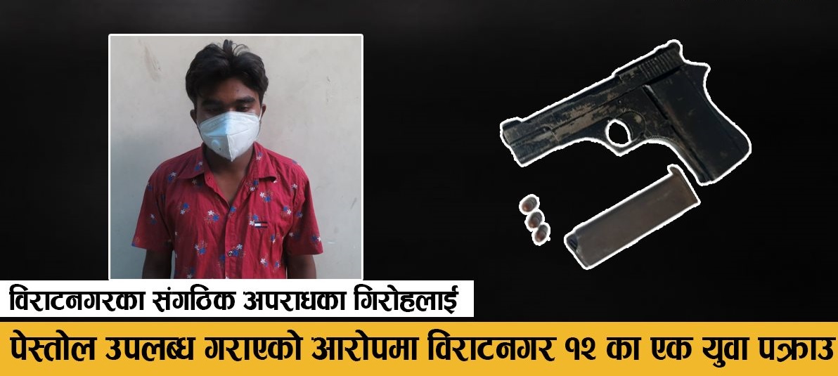 संगठित रूपमा आपराधिक समूह स्थापना गरी विराटनगरलाई आपराधिक कार्यको स्थल बनाई व्यापारीसित रकम असुल्ने गिरोहका मुख्य नाइके मोरङ कटहरी २ आर्दशनगरका २७ वर्षीय रायलाई पेस्तोल र गोली उपब्ध गराएको खुलेको छ ।