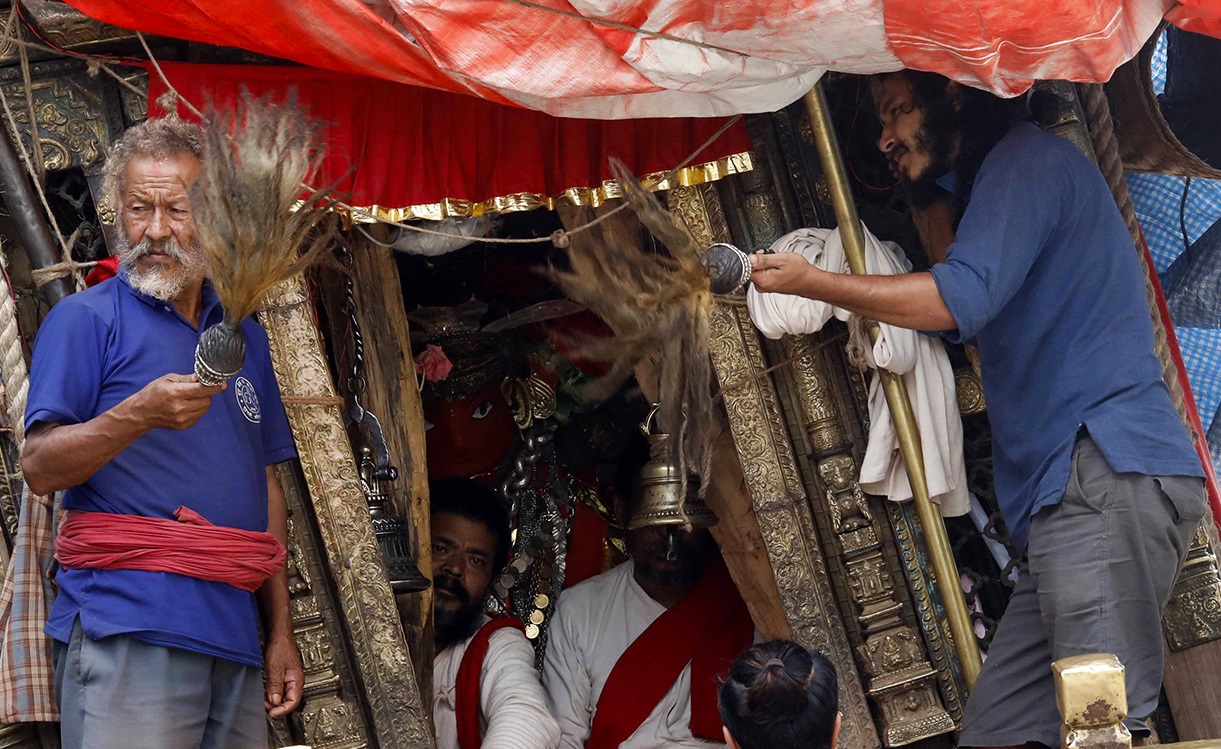 शुक्रबार जिल्ला प्रशासन कार्यालय ललितपुरले जारी गरेको कर्फ्युका बीच पुल्चोकमा रातो मत्स्येन्द्रनाथको क्षमा पूजा चलिरहेको छ ।