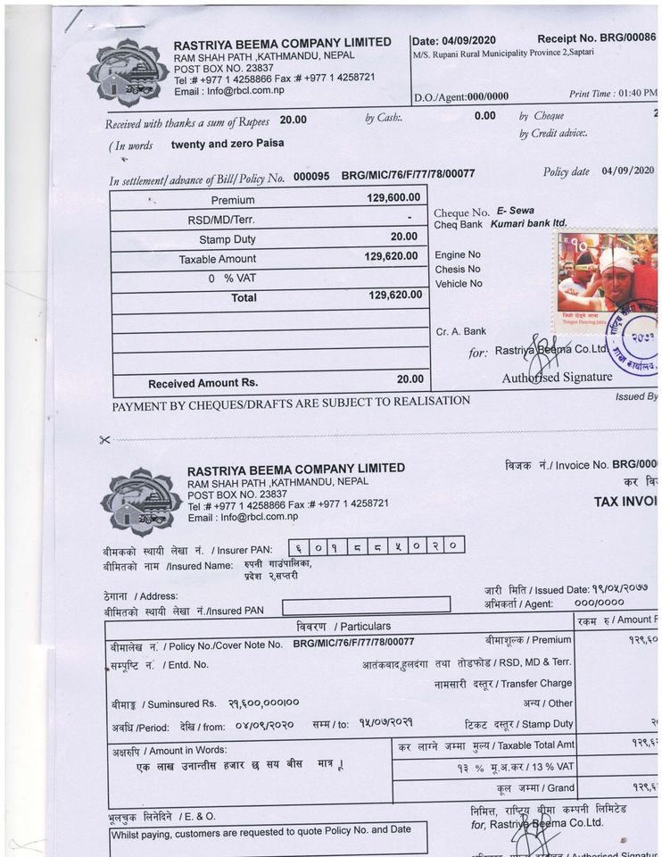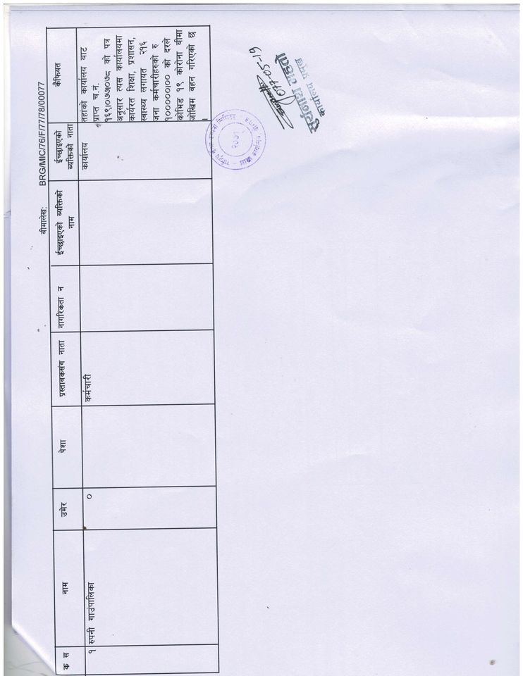कोरोन को कहर बढिरहेको अवस्था मा जोखिम मोल लिएर कार्यालय को सेवा दिरहेको अवस्थामा नेपाल सरकार द्वारा उक्त बिमा कर्मचारी को लागि गरिएको हो ।