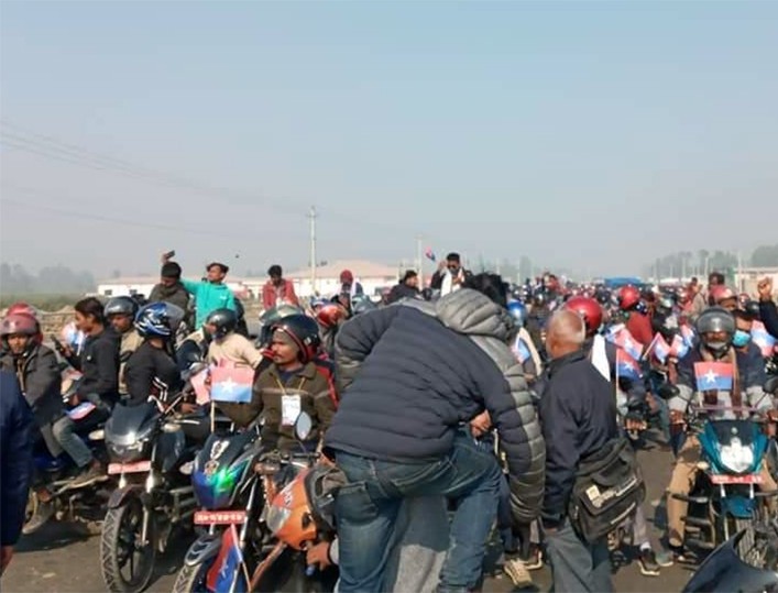 जनकपुरधामको मुजेलिया नजिकबाट निकालिएको मोटरसाइकल र्याली नगरको विभिन्न भाग परिक्रमा गर्दै जनक चोकमा गएर टुँगिएको छ ।प्रधानमन्त्री ओलीले संसद विघटन गरेको कदमलाई सही भन्दै उनीहरुले समर्थनमा प्रदर्शन गरेका हुन् । जनकपुरमा मंगलबार नै नेता बस्नेतले पार्टीका युवाहरुलाई सम्बोधन गर्ने कार्यक्रम पनि छ ।