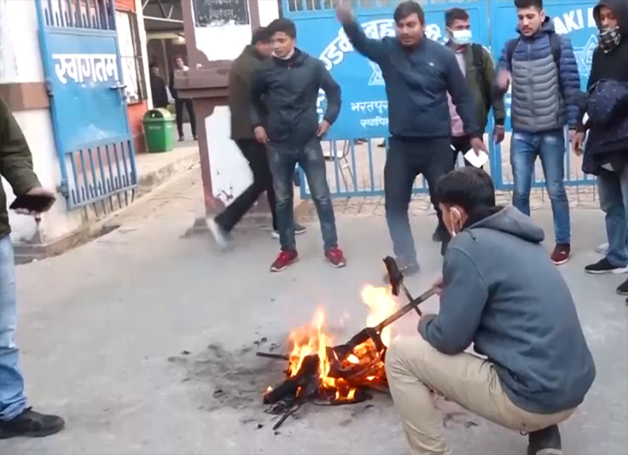 संसद विघटनको विरोधमा हाल प्रचण्ड–माधव समूहका विद्यार्थीहरु दोस्रो चरणको आन्दोलनमा छन् । सोही आन्दोलनको क्रममा आज देशभर प्रधानमन्त्री ओलीको पुत्ला जलाउने कार्यक्रम तय गरिएको छ ।