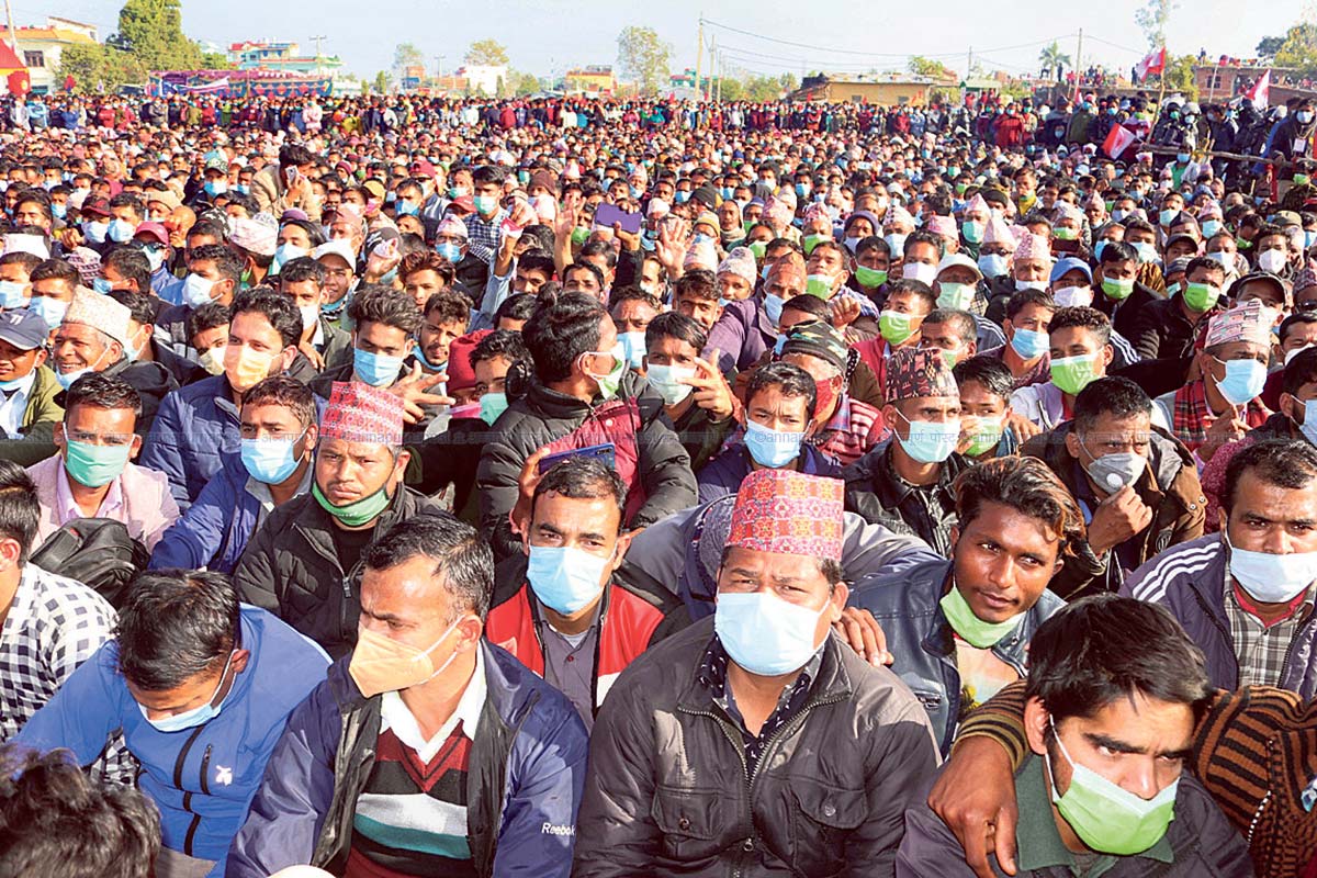 नेकपाको अर्को खेमाका अध्यक्ष पुष्पकमल दाहाललाई लक्ष्य गर्दै प्रधानमन्त्री ओलीले भने, ‘जसलाई छोरीहरूको मतलब छ, जसलाई बुहारीको चिन्ता छ, जसलाई आफन्तको मतलब छ, तिनको पार्टी हो कि तपाईंहरूको पार्टी हो ? यो पार्टी सम्धीवाला पार्टी होइन। यो पार्टी छोरीबुहारीवाला पार्टी होइन। यो पार्टी भाइभतिजावाला पार्टी होइन। यो पार्टी तपाईंहरूको पार्टी हो। देश बनाउने पार्टी हो। जनताको पार्टी हो। त्यसकारण उहाँहरूले गफ नदिए हुन्छ।’