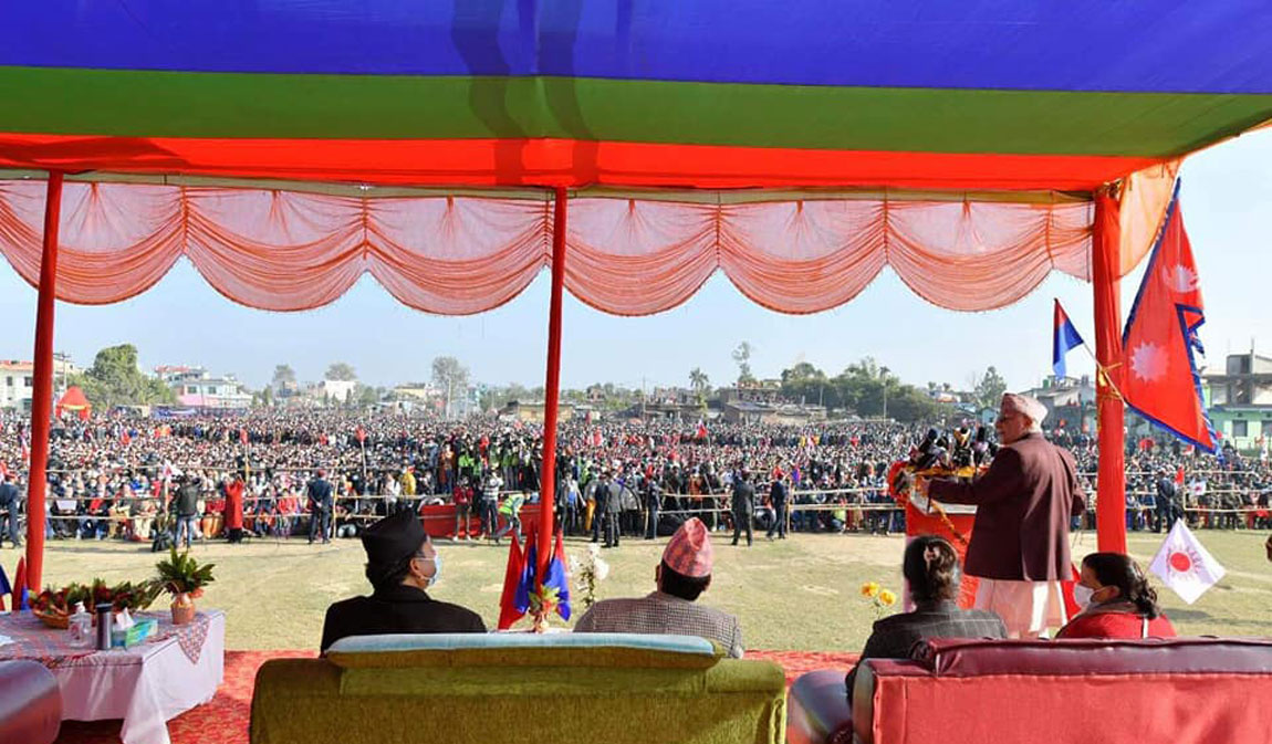 आफू नेतृत्वको नेकपा सुदूरपश्चिम प्रदेश कमिटीले शुक्रबार धनगढीमा आयोजना गरेको बृहत् आमसभालाई सम्बोधन गर्दै प्रधानमन्त्री केपी शर्मा ओली ।