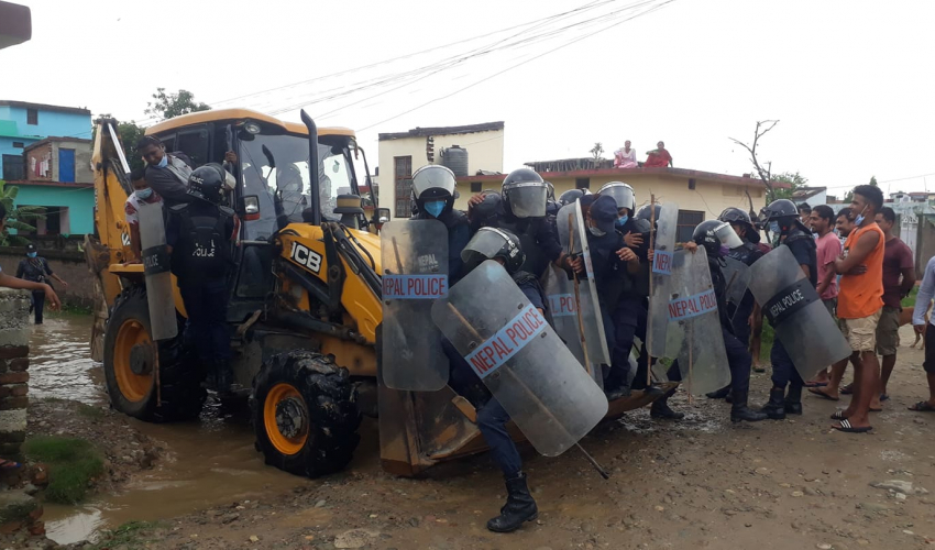 बस्तीमा जमेको पानी निकासका विषयमा स्थानीय र प्रहरीबीच झडप, १३ प्रहरी घाइते