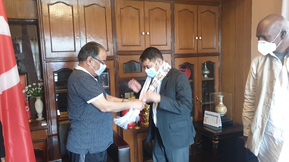बादललाई पराजित गरेका डा. खिमलाल देवकोटाले नेकपाका अध्यक्ष दाहाललाई भेटे