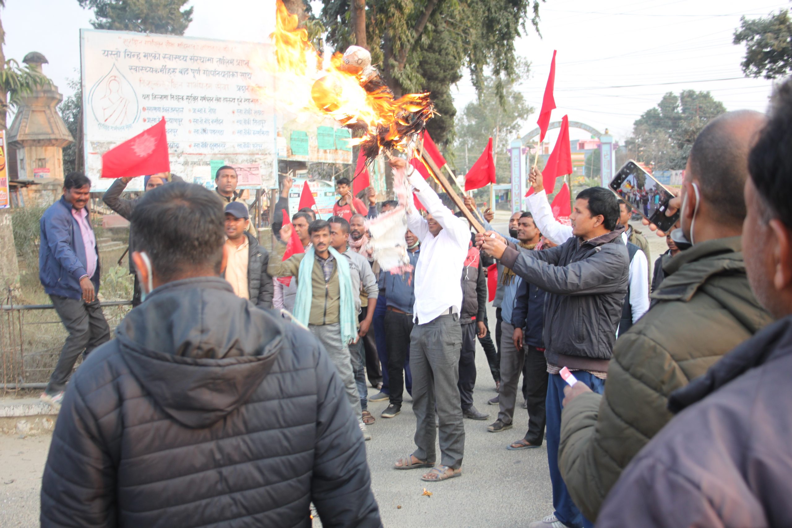 सप्तरीको विभिन्न ठाउंमा प्रधानमन्त्री र गृह मन्त्रीको पुतला दहन