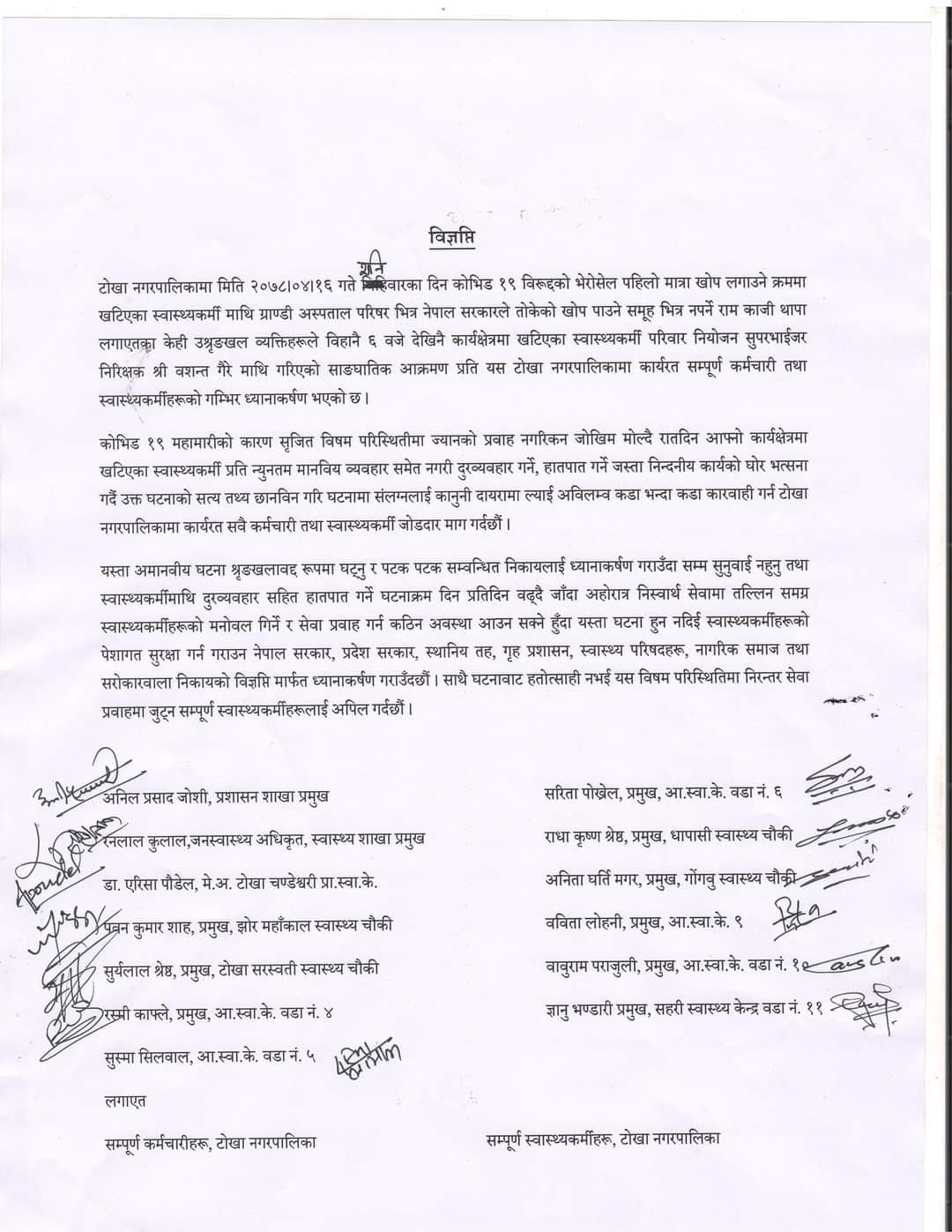 ग्राण्डी अस्पताल खोप केन्द्रमा खटिएका स्वास्थ्यकर्मीमाथि मुक्का प्रहार