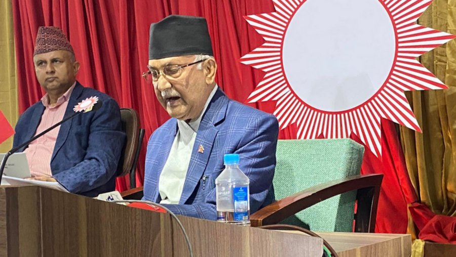 एमाले अध्यक्ष केपी शर्मा ओलीले पत्रकार सम्मेलन गर्दै