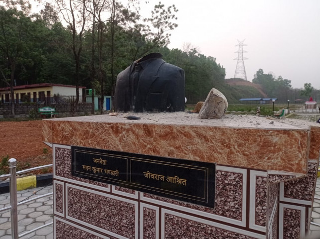 हेटौंडामा मदन भण्डारी र जीवराज आश्रितको शालिक तोडफोड