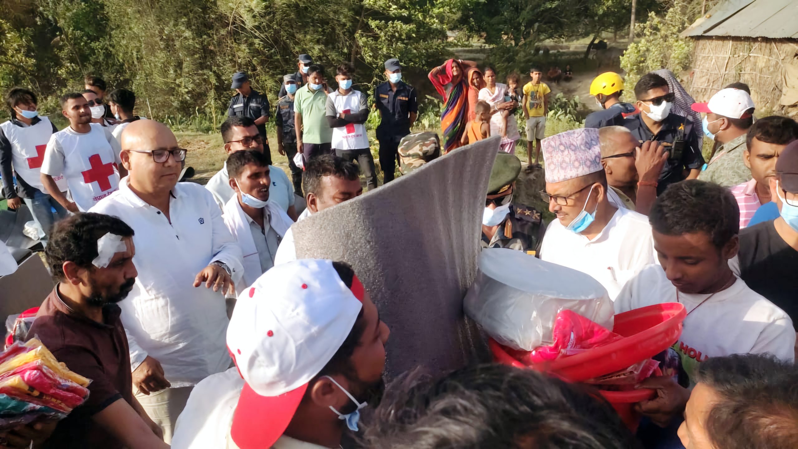 जिल्ला विपद् व्यवस्थापन समिति सप्तरीकाे अगुवाइमा आगलागी पीडितलाई राहत सामाग्री वितरण ।