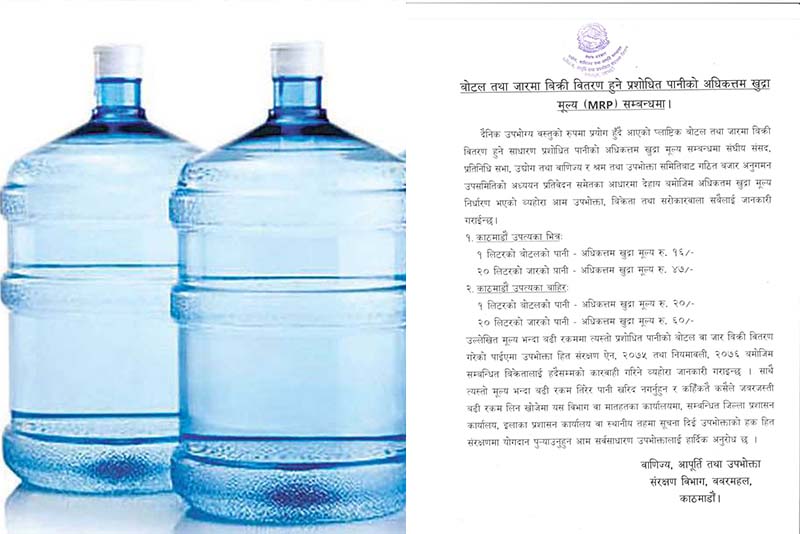 सरकारद्वारा पानीको मूल्य, एक जारको ४७ रुपैयाँ